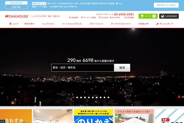 オークハウスはシェアハウスに特化した賃貸情報サイトで、特に上京後の住む場所に悩んでる人にオススメ!