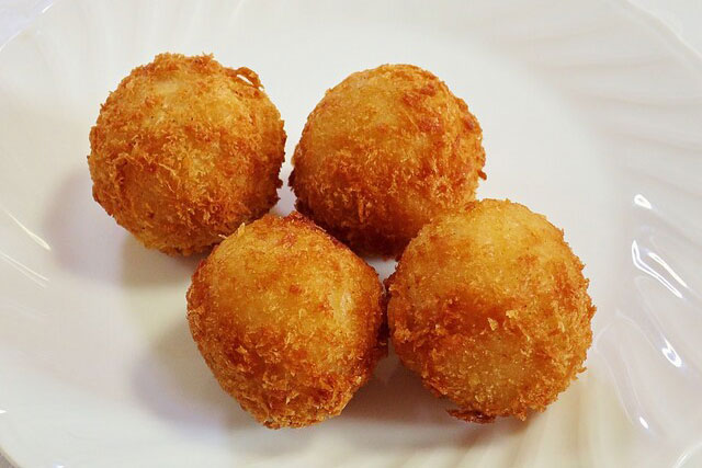 おでんとして煮込まれたじゃがいもと大根が入った出汁風味のコロッケで、食べるとほっと落ち着くような味なんです。